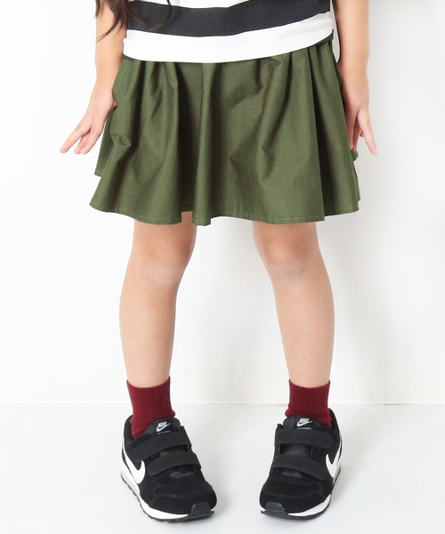 ボリュームたっぷり『ミニ丈布帛ギャザースカッツ』。 たっぷりのギャザーと程よいハリ感でふわっと広がるシルエットに仕上げました。 動き回っても安心なインナーパンツ付きです。 カラー展開も豊富なので合わせやすさも◎ 暖かい季節にピッタリなミニ丈もこだわりポイントです♪ キッズからジュニアまでをカバーする100cm~160cmまでの豊富なサイズ展開です。 ■ディティール■ 伸縮性:なし ・ウエストはゴムで楽ちん♪ゴム取替口あり ・便利なお名前タグ付き