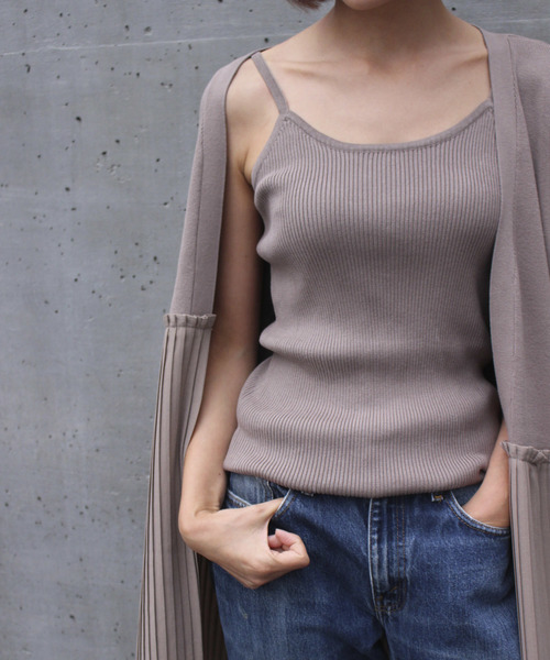 艶があってサラッとした着心地のニットキャミは、“emma taylor”の定番人気アイテム。キャミソールとして女らしく着こなすほか、Tシャツやカットソーと重ねるトレンドのレイヤードスタイルにも活躍します。また、今シーズンは、着丈を2cmプラスして、ヒップが半分隠れる長さをキープ。お腹や腰回りをさりげなくカムフラージュしてくれます。同素材のプリーツニットガウンを合わせて、セットアップとして大人っぽく着るのもおしゃれ。程よいリラックススタイルと、きちんと系の着こなしが両方楽しめます。カラーは、キャメル、オフホワイト、ネイビーの全3色。 ※商品画像はサンプルのため、色味やサイズ等の仕様に変更がある場合がございますので、予めご了承ください。