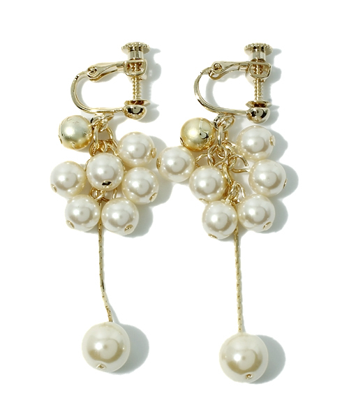 繊細な輝きを放つ小粒のパールをあしらい、華やかな印象に仕上げたイヤリングです。 さりげなくゴールドビーズをポイントで1粒配し、上品なアクセントをプラス。程よいボリューム感と動きの出るデザインで、耳元に可憐な煌めきを与えてくれます。 コーディネートを選ばず、デイリーからパーティまで幅広く活躍するデザインです。 jour couture / ジュール クチュール日本人デザイナーが手掛けるアクセサリーブランド。“いつもオシャレを楽しみ、自分らしさを大切にする”をコンセプトに、流行にとらわれる事のない、上品で可愛いアクセサリーを発信しています。 店舗へお問い合わせの際は下記品番をお伝えください。 品番:73-42-2013-146