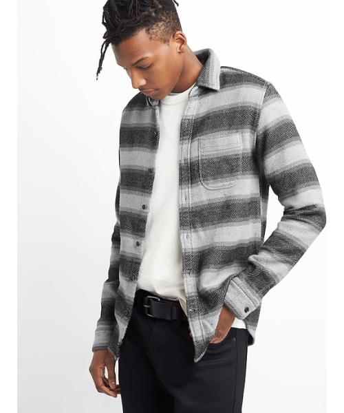 テーラード イージーフィット腰丈モデルはGapレギュラーMサイズを着ています。ツイルの織り地ボタンカフス付き,ボタンカフス付きスプレッドカラー、ボタンフロント胸にスナップフラップ付きパッチポケットカーブしたシャツテール全体にダメージ加工のディテール入り*商品タグに記載の価格とサイト上の販売価格が異なる事があります。