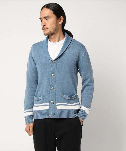 独特のジャガード素材が魅力のカーディガン★背中部分のロゴプリントがポイント!爽やかなブルーで好印象です♪レディースとしてもビッグシルエットで可愛いです。
