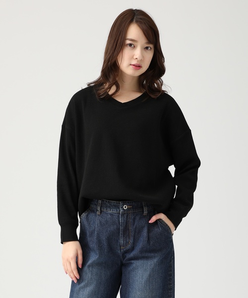 衿ぐりをスッキリきれいに見せてくれるVネックプルオーバー。 柔らかなワッフル素材が着心地よく、シンプルだけど存在感のある1枚。 パンツ合わせはもちろん、スカート合わせのきれいめスタイルにもおすすめです。 洗濯:手洗い可