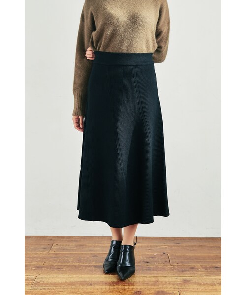 主役にもサブにも使える、しっかり素材のニットフレアスカート。 150cm前後の方が着用した場合、すねのあたり(足首の10cm上あたり)になる丈感です。スニーカーにも合わせやすい長さです。 厚みのあるしっかりしたニット素材。縦ライン強調の編み目のため、すらっとシルエットが実現!つるっとししっとりした手触りで、着心地も抜群です。 ウエストはゴム仕様のため、細身の方でもずり落ちない&お腹周りの気になる方まで広く着用いただけます。 カラー展開は、【えんじ・ベージュ・ブラック】の3パターン。 サイズ展開は、全色XS、ブラックのみSサイズも用意があります。