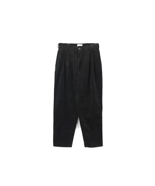 yotsuba コーデュロイ ワイドパンツ。 通常よりも太ピッチで、ふっくらとしたボリューム感のあるコーデュロイ生地。 2タックのワイドな腰回りから裾に向かってテーパードしたシルエット。 ウエストにはドローコードが施されておりベルト無しでもお召しいただけます。 トップスを選ばずオールシーズン活躍してくれる一本で、 体型問わず、男女共にオススメです。 サイズ展開 [1・2] カラー展開 [オレンジ・ピンク・ブラック・バーガンディー・グリーン・ブラウン]