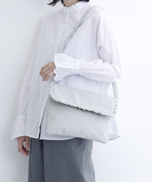 かぶせに縁どられたフリルが可愛らしいポイントのショルダーバッグです。マチ無しのデザインが今年らしく合わせるだけでトレンド感のあるスタイルに。横長の形なので長財布が入れやすいのも嬉しいポイントです。