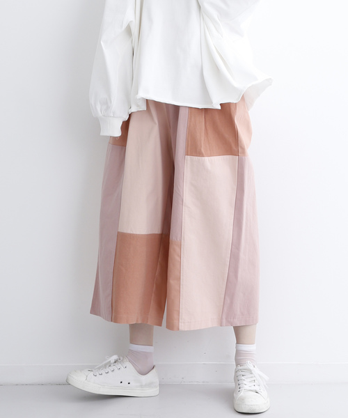 明るいカラーバリエーションが春の装いにぴったりなワイドパンツです。 パッチワークのデザインがコーディネートに華やかさをプラス。 すっきりとしたひざ下丈が爽やかに着こなしていただけます。 パッチワークダブルジャケット2578(問い合わせ番号:28300146)と合わせるとセットアップ風のスタイルになりおすすめです。 ジップフライ。