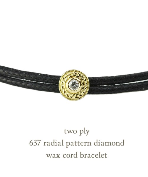 「 Radial Pattern 」 放射線状の縄編み模様に一粒ダイヤモンドが輝く ワックスコード ブレスレット 洗練された印象のジェンダーフリーなゴールド 紐ブレスレットです。 さり気ないダイヤモンドの輝きがありクールな印象で身に付けていただけます。 女性だけではなく、男性にも身に付けやすいデザインです。 ご自身へのご褒美に、そしてプレゼントにもお薦めのブレスレットです カラーは16種類 レッド、ネイビー、ブラック、ホワイト、オレンジ、グリーン、ライトグレー、セメントグレー カーキ、ブラウン、ブルー、ベージュ、ピンク、プリムローズ ピンク、パープル、マホガニー からお選び頂けます。 18金イエローゴールド製