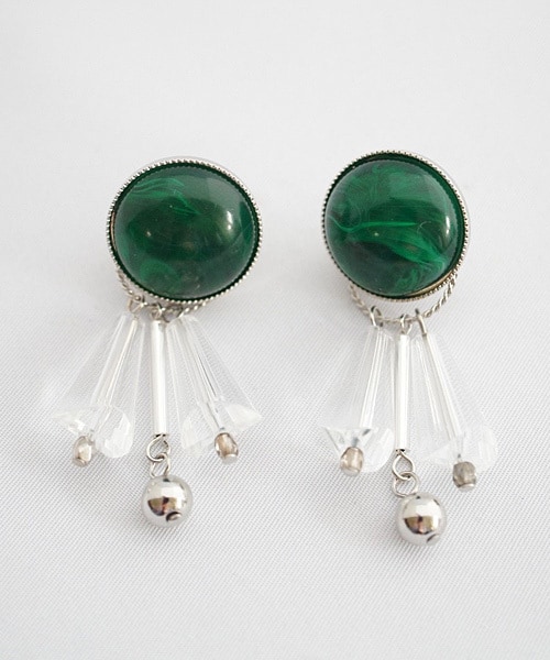 ドイツ製アクリルのカボションにクリアーフリンジを組み合わせました。 2Wayになっているので、下のフリンジは取り外しが出来ます。 コーディネートによってカボションだけで使う事も出来ます。 また春夏の組み替えシリーズお持ちの方はKannaも一緒にアレンジ出来ます。 さりげなく個性的にデートやお出かけにピッタリなデザインです。 ニットやブラウスに相性良くオールシーズンお使い頂けます。