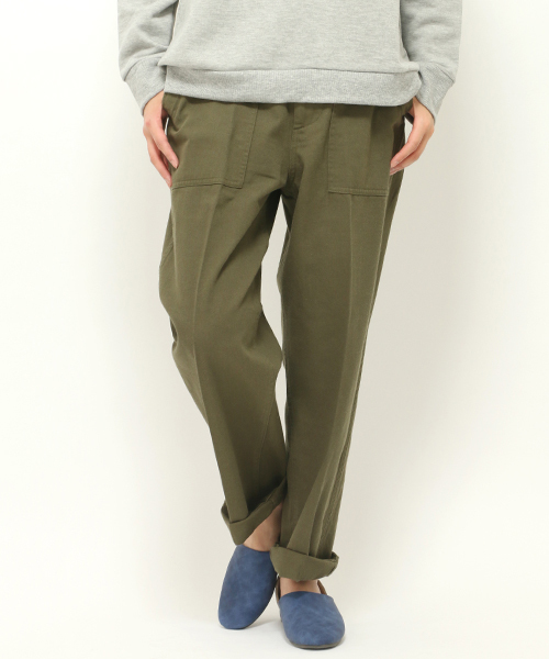 ワークパンツの中でも今年注目度の高いベイカーパンツ。少しサイズ感をゆったりさせ、股上も深めで今年らしいシルエット。日々のカジュアルコーデに使いやすく、裾をロールアップさせればヒール合わせも様になります。定番の1本としてワードローブに加えたいアイテム♪ジップフライ。[クリーニング]洗濯機洗い可(非常に弱く)ドライクリーニング可(P)ウェットクリーニング(W)[洗濯方法]洗濯の際はネットを使用してください
