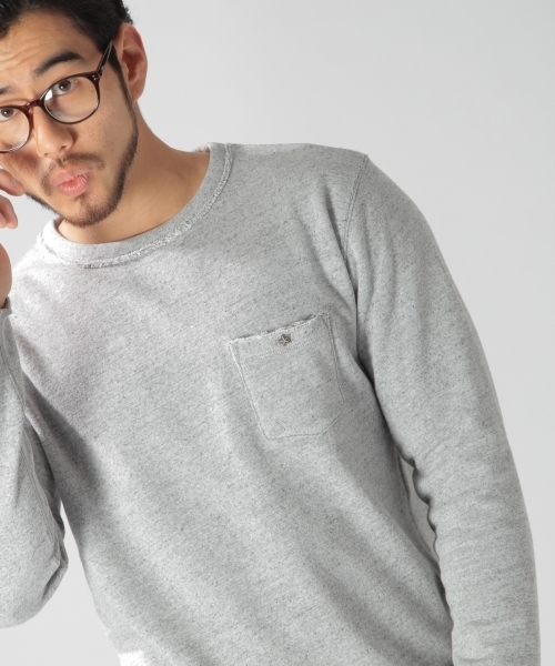 肌触りの良い裏面パイル素材を使用した長袖プルオーバー。 左胸のポケットにあしらった星のコンチョがアクセント。 秋口の1枚着としても、ダウンベストやシャツ羽織りのインアイテムとしても便利なアイテムです。 ※製品加工を施している為、一点一点風合いが異なる場合がございます。予めご了承ください。 ※屋外での撮影画像は光の加減で実際の商品より明るく、あるいは暗く見える場合がございます。商品の色味はスタジオ撮影の画像を参考にして下さい。