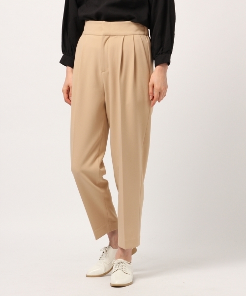 春カラーで気分も明るく♪ 腰回りはゆったりと。テーパードシルエットですっきり見えの女性には嬉しいシルエット。 センタープレスでキレイ目に穿くことができ、後ろがゴムなのでタックインスタイルもらくちん♪ 明るいカラー展開で春色を取り入れてみてください。