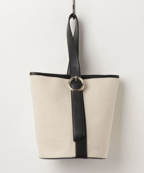 スタイリッシュなワンハンドルに、こなれ感のあるバケツ型フォルムが最旬のキャンバスバッグ。 間口の留め場所を変えることで、表情の変化が楽しめるWフェイスデザインになっています。 シンプルなスタイルに一点投下するだけでも、オシャレに敏感なトレンドスタイルが決まるプラスワンアイテムです。