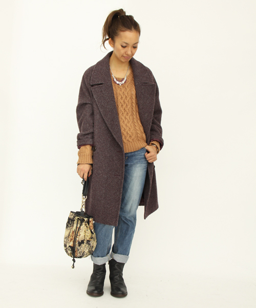 ジャガードワイドコート☆ 2012年のWinter Story「We are gentlegirls」を色濃く反映するAnother Edition NYNより、冬の新作が入荷しました!今シーズンは、伝統的な英国紳士のスタイルと、女の子だからこそロマンティックなスタイルをリミックスして「ダンディでお洒落な雰囲気を漂わせた女の子」をテーマにAnother Editionの”かわ・かっこいい”スタイルを提案します。ビッグシルエットで、マニッシュな雰囲気のコートは、今シーズンのトレンドスタイルに欠かせないアイテム!落ち着いたカラーのジャガード柄は、Another Editionオリジナルの柄を使用したこだわりのアイテム。トレンドのクラシカルなスタイリングにピッタリのコートです。 ★ATTENTION:この製品は摩擦によりピリング(毛玉)になりやすいので着用時お気をつけ下さい。★ ★ATTENTION:摩擦などにより色移りの可能性がございますのでご注意下さい。★ model:H162 B78 W60 H84 着用サイズ:SMALL ●ダークグレー・ワインレッド着用スタッフ:158㎝ ●ワインレッド着用スタッフ:154㎝ ※スタッフ着用画像は色味が若干異なります。カラーは詳細画像をご確認ください。 ※着用、お取り扱いの際は商品についておりますアテンションタグ、洗濯ネームを必ずご確認ください。 店舗にお問い合わせの際は、下記の品名/品番をお申し付け下さい。 品名:NYN W JQ ワイド CT 品番:56252991580 ☆★☆期間限定10%OFF対象アイテム ☆★☆ 12/7(金)~ 12/26(水)10:00まで10%OFF価格にて販売をしておりました。 現在は本サイトに記載している価格が販売価格になります。