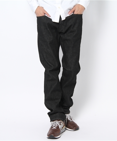 毎シーズンご好評を頂いているグリーレーベル オリジナルのデニムパンツより新作ブラックデニムが登場です。 スッキリとした細身のシルエットながらストレッチを兼ね備えた履き心地良い仕上がりです。履きこむほどに風合いの出る色落ちが楽しめる1本。オリジナルのレザーパッチもさりげないポイントのひとつ。シンプルなデザインで定番アイテムとしてスタイリングに活躍する一本です。 ※他の衣服に付着する事があります。また洗濯により徐々に染料が色あせいたしますので取り扱いには品質表示を確認の上ご注意下さい! ※摩擦により淡いカラーのベルトやバック等に色移りの可能性がございますのでご注意下さい。 model:H182 B84 W69 H84 着用サイズ:MEDIUM 店舗にお問い合わせの際は下記の品番をお申し付け下さい。 品番:3214-199-1434