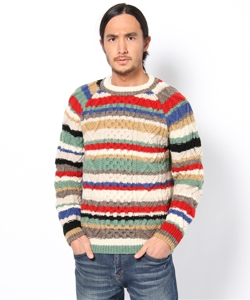 ヴァージンウールを使用した、本格的なアランセーター。袖や身頃など、全て配色が違うマルチボーダーは、ハンドニットならではのデザインで、存在感のある一着。ローゲージニットならではのボリューム感をお楽しみ頂きたいアイテムです。model:H180 B86 W70 H86 着用サイズ:MEDIUM店舗にてお問い合わせの際は、下記の品番をお申し付け下さい。品名:BY ARAN MULTI BOR CN 品番:1213-106-1049