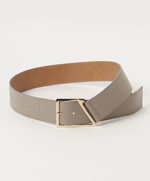 バックル部分が斜めにカットされた変形バックルベルトです。 立体的なウエスト周りにさり気なくフィットするデザインです。 ハイウエストのボトムやワンピース、セットアップのウエストをマークすると、着こなしにトレンド感と女性らしさが加わる万能アイテムです。