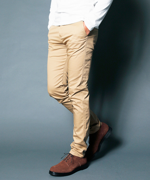 Magine定番チノシルエット、新型登場! コットン/ポリウレタンの混紡コンパクト糸を使用したストレッチ素材を使用。 細身のシルエットながらも、履き心地の良いアイテムです。 ※画像の写真はサンプルになります。 実際の商品と、仕様・サイズ・加工が若干異なる場合がございます。 ・ジップフライ。