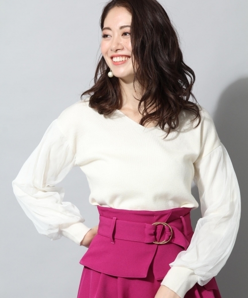 袖部分がオーバーチュールになったVネックトップスです。 お仕事着にも普段着にも使いやすいシンプルアイテム! 着回し力抜群でスカートでもパンツでも合わせやすいきれいめニットです。 ーーーーーーーーーーーーーーーーーーーーーーーーーー ▼ 商品のお気に入り登録 ▼ 完売カラーの再入荷通知や、ラスト1点の通知、 セールの通知も受け取ることができます。 ぜひご登録ください♪ ▼ ブランドのお気に入り登録 ▼ 新商品や再入荷など、 ブランドのお得な情報をいち早くお知らせ! ぜひご登録ください♪