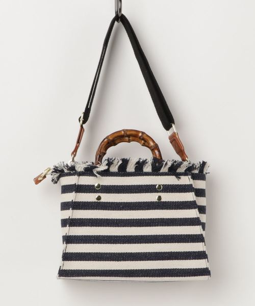 リッチなバンブーハンドル付きのキャンバストート。キャンバス地のカジュアルな使い心地に、エレガントなハンドルのバランスが絶妙です。さらにショルダーも付いて2WAYの使用OK♪ 内側の色味は全カラー外側の色味と同系色です。