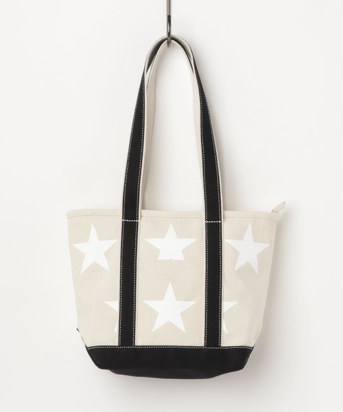 「コンバース」を象徴するスター柄のトートバッグ。 A4が丁度良く収納できるサイズで、肩掛けしやすようにハンドルを長めに設定。 丈夫なキャンバス地で使い勝手がよく、内ポケット×1、口元ファスナー付きと日常使いにうれしい機能性です。
