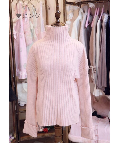 ♡Bobon21 2017Winter New Collection♡ ハイネックのモヘアリブニット ゆったりシルエットのオーバーサイズ モヘア素材でふんわり可愛く 袖はロールアップデザイン デイリーコーデ着まわし上手な1着 ピンクと白の2色展開