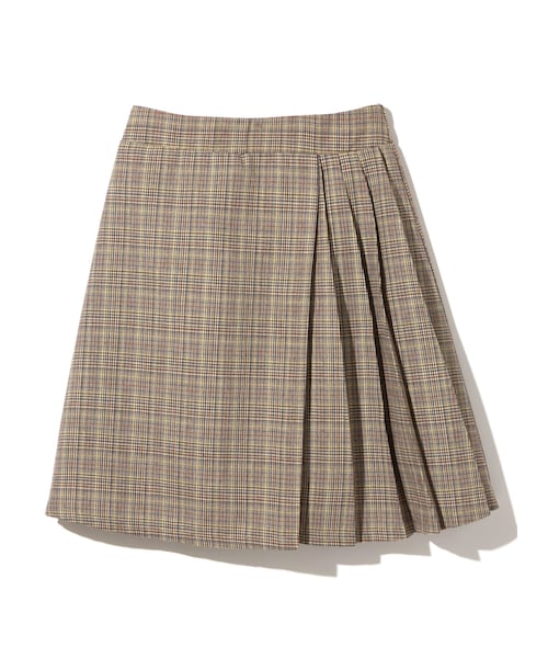 グレンチェックがクラシカルな印象を与えるスカート♪ 片側だけに施したプリーツがカジュアルな表情をプラス♂ バックウエストゴム入りで着脱もラクチン◎ ★裁断の関係で、柄の出方が写真と多少異なる場合があります。 ★バックウエストゴム入りです。 ★裏地付きです。
