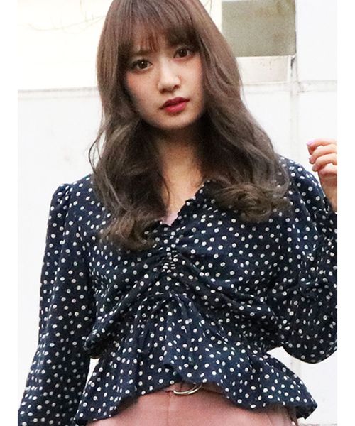 ぷっくりとした小花柄プリントで表面感のおもしろいブラウス。 ボトムに合わせて前のリボンの長さを調節できます。