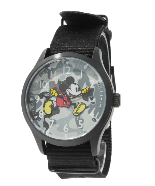 ミッキーの両腕が時針と分針になったアナログ腕時計です。 文字盤は迷彩柄で、ミリタリーテイストの可愛らしいデザインになっています。 品番 4725-118