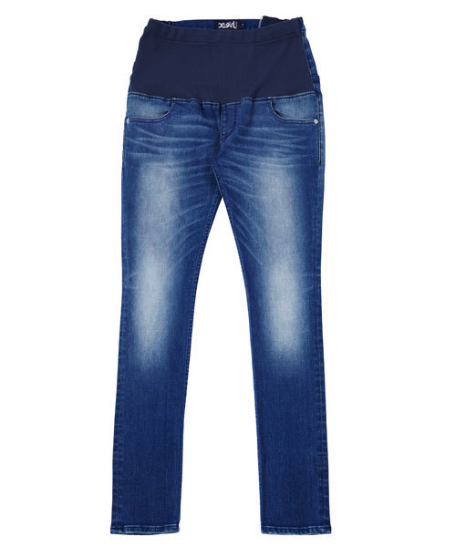 XGIRL 2012 FALL人気商品EMBROIDERED POCKET JEANSにマタニティ機能をデザインしました。ヒップポケットの大胆なロゴ刺繍がポイント。スーパーストレッチ素材なのでマタニティ期間も快適な履き心地です。 ※ウエストアジャスターゴム。