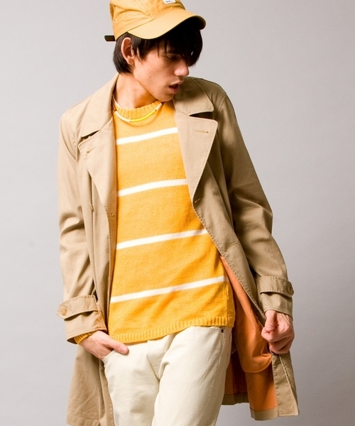ダブルフェイス生地を使用したミリタリートレンチ。 裏糸をイエローやオレンジで織る事で裏面のみが配色になるのがこのダブルフェイスの特徴です。 13春夏は「色」がトレンドのシーズン。表面に色物は抵抗がありますが裏面にさりげなく トレンドが表現された今期らしいトレンチコートとしてオススメです。 ※画像の商品はサンプルです。 実際の商品と仕様、加工、サイズ、素材が若干異なる場合がございます。 model: H182 B92 W71 H90 着用サイズ:LARGE 店舗にてお問い合わせの際は、下記の品番をお申し付け下さい。品名:MT STRC W/FACE MIL/TRNC 品番:1286-199-0154