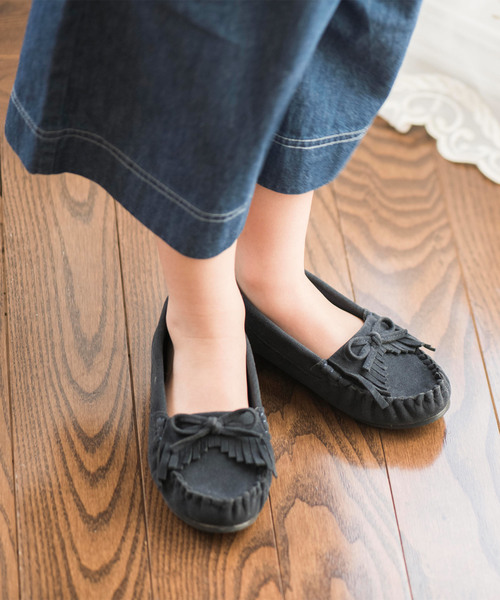 コーデをおしゃれに格上げ! オールラウンダーなモカシンローファー。 おしゃれな人はみんな持ってる!スリッポンタイプで楽々、合わせを選ばずオールマイティーなキッズモカシンローファーです。 スウェード調のマットな表面感がコーデをナチュラルに、旬顔に仕上げてくれます。 デニムやパンツといったマニッシュなスタイリングにも、 スカートやワンピースにタイツ、といったガーリースタイルの足元にも。 柔らかくて軽量、スリッポンタイプだから履きやすい、 コーデを選ばず合わせやすい!おしゃれ名人はみんな持ってる、頼れる一足です。 内側は柔らかい布地を使用、ソールは滑りにくいソールです。 どんなコーデにもなじむベーシックカラー、女子度アップのキュートカラー、全5色でラインナップ。 こんなシーンにどうぞ:通園・通学、お散歩、買い物や普段のお出かけ 【サイズについて】細身のシューズです。かならず足幅の数値をご確認ください。 <20cm>足長16.9-足幅6.3-足囲13(cm) <21cm>足長17.7-足幅6.5-足囲13.4(cm) <22cm>足長18.6-足幅6.8-足囲14(cm) <23cm>足長19.8-足幅7.1-足囲14.5(cm) ※素材の特質上、色味がくすんで見えるカラーもございます。ナチュラルな風合いお楽しみください ※商品の素材や色合いなど、生産時期によって差異が生じます。