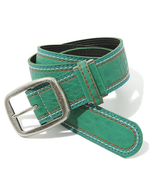 飾りステッチのフェイクレザーベルト。シンプルで使いやすいデザインはボトムを選ばず、幅広いスタイリングに合わせられます。サイドに施されたカラーステッチがウエスト部分のアクセントにもなります。マットな光沢のバックルもポイントです。お値段も手頃で、ご自身用は勿論、プレゼントにもオススメです。 店舗にてお問い合わせの際は、下記の品名・品番をお申し付け下さい。品名:トリコステッチシボPUベルト 品番:MBE1212-001C