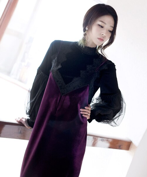 DINT(ディント)の「ゴージャスボリュームスモークブラウス(その他トップス・レディース・Black/Beige・one(44~66size))」の2枚目の写真