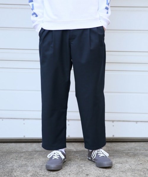 今やスタイリングに欠かせないワイドパンツ。落ち感が特徴のTR素材を使用し、軽い穿き心地に加え、更に穿きやすいシルエットにアップデートしました。どんなスタイルにもマッチする、ベーシックなカラー展開なので色違いで選ぶのも◎また、ウエストには紐・ゴム仕様にしているので、イージーパンツのようなラフな着心地に仕上がっています。シンプルなデザインなので、どんなスタイルにもマッチし、幅広い季節で使って頂けるおすすめの一品です。