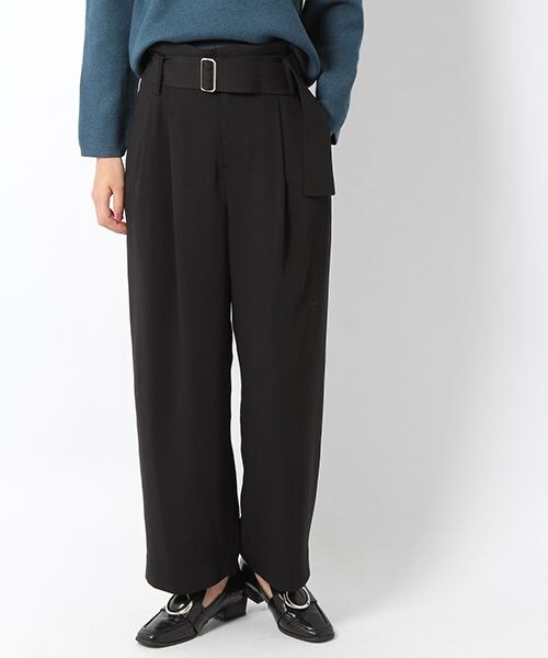 しわになりづらいベルト付ワイドパンツ。ストンとした落ち感もありつつ、きちんとした印象になるのでお仕事にもお使いいただきやすいです。シーズンレスで着回せるスタンダードなシルエットです。