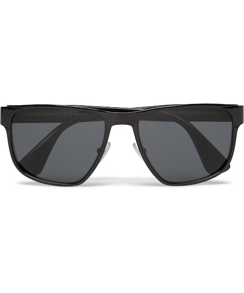 In a sleek square profile that will never date, Prada 's sunglasses are crafted from a lightweight combination of acetate and metal. They're fitted with polarised lenses that offer complete protection against harmful UV rays while reducing reflected glare coming off water, snow and glass. Keep them safe and scratch-free inside the accompanying case. This item's measurements are: Frame Height: 5cm Frame Width: 14cm Black metal and acetate Dark-green polarised lenses, designer plaques Come with a hard case and cleaning cloth 100% UV protection Made in Italy