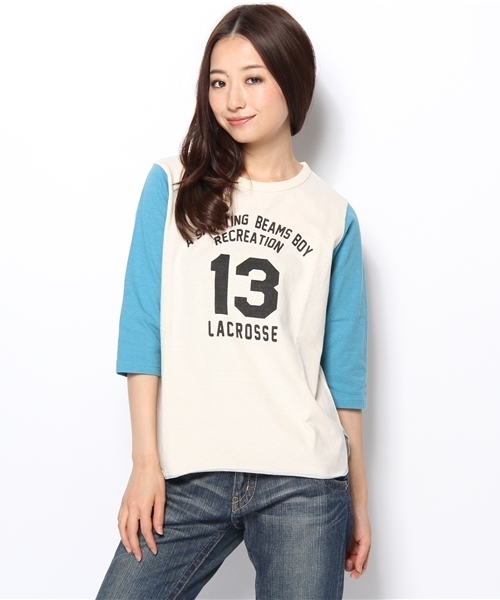 洗いざらした風合いの柔らかなコットン素材を使用。毎シーズン好評のベースボールTが登場です!程よいサイズ感やキュートなカレッジプリントが人気の秘密。アメカジスタイルには欠かせないプリントTシャツです。 ネイビーブレザーを羽織って、キルトスカート+ローファーで正統派カレッジスタイルはいかがでしょう。もちろん、ロールアップしたチノパンやふんわりスカートと合わせて、女の子スタイルもキュートにお楽しみいただけるひと品です♪店舗へお問い合わせの際は下記品番をお伝えください。 品番:13-14-0028-509