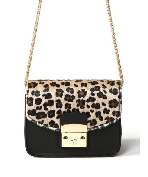 レオパードパターンのフラップ切替えデザインがエッジィなスパイスを添えるショルダーバッグ♪ スクエアフォルムがミニマルな印象に☆ ゴールドのチェーンでリッチな雰囲気をプラスしたアイテム◎ ★外ポケット:オープンポケット1個付き ★内ポケット:ファスナーポケット1個・オープンポケット1個付き ★フラップ部分は、裁断の関係で、柄の出方が写真と多少異なる場合があります。