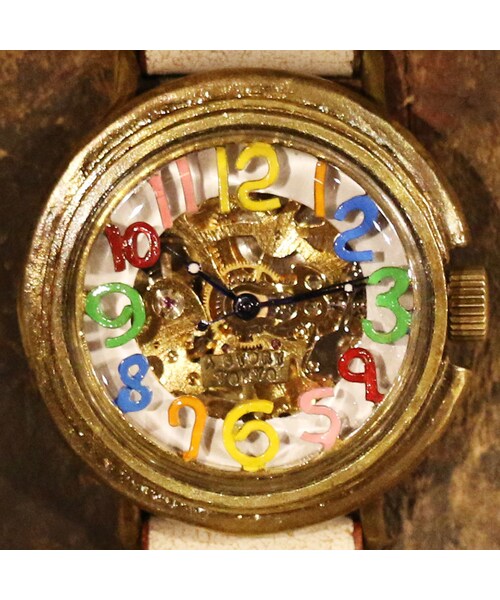 真鍮の線材を曲げて作った数字がケースの中で浮いているデザインの機械式腕時計 float see through。 裏蓋スケルトンで、表から裏からも動いている機械を楽しむことが出来ます。 時計ベルトはイタリア ベジタブルタンニンレザーのクラックホワイトをハンドステッチで仕上げた最上級モデル。 イタリア ベジタブルタンニンレザーは経年変化を楽しめる最上級のあこがれ的存在の革。 金属のカシメでとめたベルトよりも、手間はかかりますが手縫いで縫ったベルトの方が破れにくく丈夫です。 float 浮かんでは消えていく ひとつひとつ大切な時間は 記憶となって より鮮やかに あなたの中で刻み続ける。
