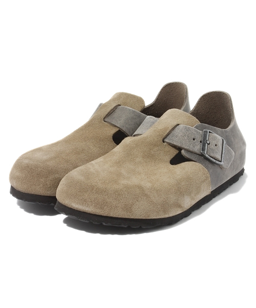 Spring & Summer 2013 SPECIAL EDITION ミニマルなデザインは幅広いコーディネートに対応。夏は素足で、冬はソックスと合わせて履けるオールシーズン対応モデル。 今回の新作モデルは、コーディネートの幅が広がるブランレザーのコンビネーション。フロントとバックで異素材を組み合わせたモデルがラインアップしています。店舗にお問い合わせの際は下記の品名/品番をお申し付け下さい。品名: LONDON VL/NU Taupe/Antique Ginger 品番:166293 ビルケンシュトックは230年以上の歴史があり、メディカルシューズとして医療機関の人々にも愛用されるなど、快適性を重視したサンダルを生産し、老若男女問わず愛されているドイツ発のシューズブランド。 「年齢や性別、人種や国境を越えて、すべての人々の健康を願う」という思いが込められています。