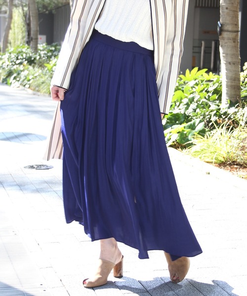 【2018 SS】 JOURNAL STANDARD L'ESSAGE ◆大ヒット!デシンマキシスカートから春の新色が登場! 今回は春らしくパッと明るいレッドとブルーの2色で展開! とろみのある落ち感のある素材感と、裾に施されたスリットが女性らしい印象に。 トップスをインすれば、バックスタイルのジップもポイントになります。 足元はヒールで女性らしくまとめても、フラットなサンダルでカジュアルに合わせても◎ 今の時期はショートブーツなどと合わせるのもおすすめ! ニットとの相性も抜群で、ハイゲージからオーバーサイズのローゲージニットでも◎ 春先はサーマルのようなカットソーとジャケットで合わせて今年らしく着て頂けます! いつものコーディネートも、ぐっと旬なスタイリングに仕上がる一枚です。 ご自宅で洗濯出来るイージーケアも嬉しいポイントです! ※取り扱いについては、商品についている品質表示でご確認ください。 ※店頭及び屋外での撮影画像は、光の当たり具合で色味が違って見える場合があります。 商品の色味はスタジオ撮影の画像をご参照下さい。 ・ファスナー有り。 ・裏地有り。