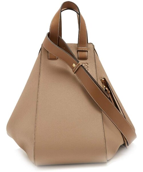 Modern construction is key to the changable composition of Loewe's dark-beige grained calf-leather tote. The sack-like shape is set on a flat base with two top handles and features zips throughout the wide side panels which can be unfastened to create more room. Black lacquered edges and two internal slip pockets compete the look. Use the detachable strap to position it over the shoulder of one of the label's shirtdresses.