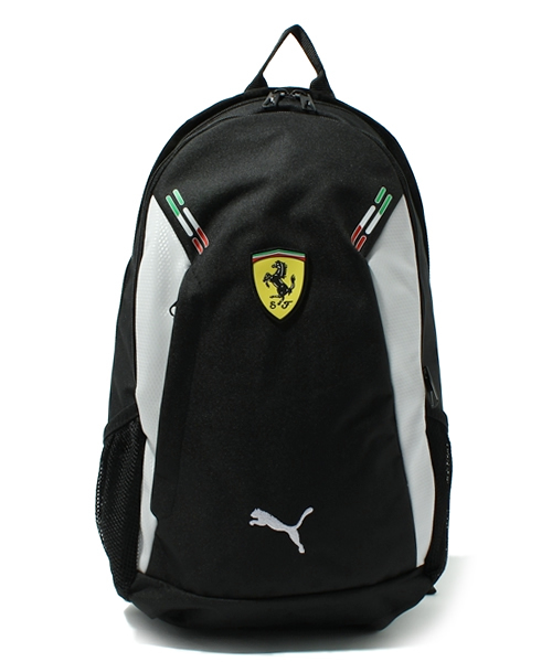 フェラーリレプリカモデルより、バックパックです。丈夫なポリエステル・ナイロン素材です。背中にあたる背面部分は、通気性を考慮したメッシュ素材で、クッション性も持たせています。バッグの外側には、両サイドにメッシュポケットがあり、ドリンクボトルなどを入れるのに便利です。外側フロントにも横から空けるポケットが付いています。メインコンパートメント部分も前面と背面の2つの構造になっています。背面の広い方の内側には、ノートパソコン等を入れるのに便利なクッション性のある仕切りが付いているのもポイントです。 <PUMA Scuderia Ferrari - Replica (フェラーリ レプリカ)> (2013 SPRING & SUMMER) 全アイテム一覧 プーマは、スクーデリア フェラーリとエリートパートナーシップ契約を結び、フェラーリのレプリカならびにファングッズを正式なライセンスのもと販売しています。ストアオンラインでは、ファン必見の「フェラーリ チーム レプリカ」と「フェラーリ ファンウェア」、日常使いしやすい「フェラーリライフスタイル」、各ラインのウェア・バッグが、MEN&WOMEN充実のラインナップ。跳ね馬エンブレムや、イタリアのフラッグシップカラーがデザインのポイントです。