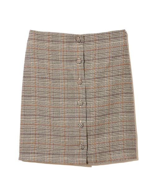 端正なグレンチェック柄が、大人カッコいい印象をメイクするスカート☆ フロントのボタンもヴィンテージ感漂うアクセントに♂ スッキリとしたタイトシルエットが足を綺麗に魅せること間違いなし◎ ★裁断の関係で、柄の出方が写真と多少異なる場合があります。 ★裏地付きです。 ★バックウエストゴム入りです。