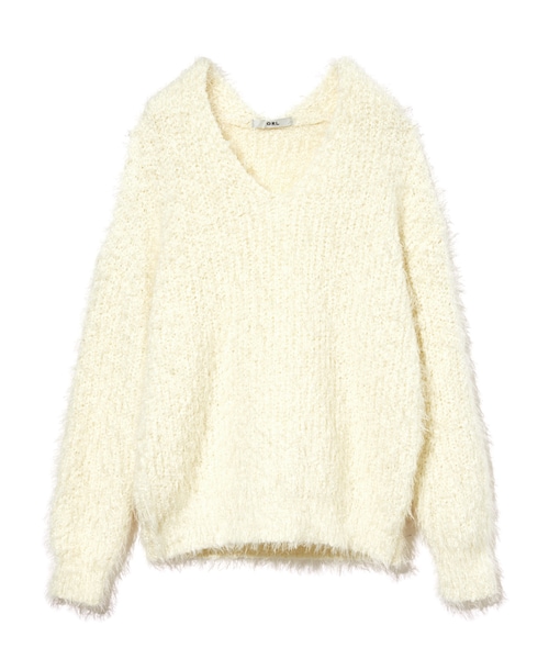 モコモコした糸とフェザーを組み合わせた、思わず抱きしめたくなるふわふわニットトップス♪ Vネックで首元を綺麗に魅せて、女らしさも忘れずに☆ ゆったりしたフォルムでリラックスして着られるのもうれしいトコロ♂ ★伸縮性があります。 ★素材の特性上、カラー・形・サイズが、写真・サイズ表示と多少異なる場合があります。