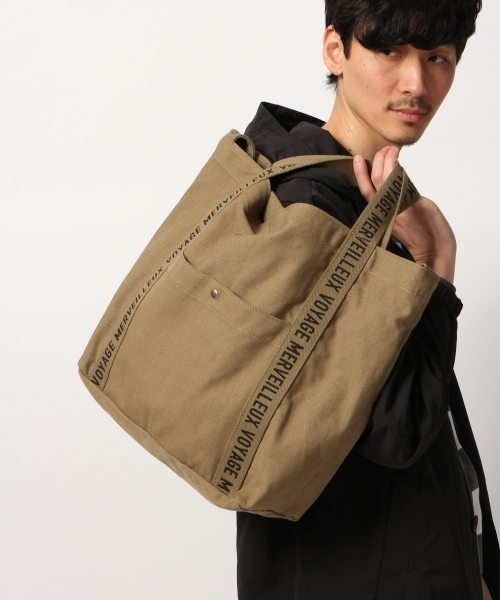 春らしいキャンバス素材♪ 春らしいコットンポリキャンバス素材を用いたバッグは、 ①トートバッグ②ショルダーバッグの2WAYでお使いいただける万能デザインの1点。 デザインのアクセントにレタリングプリントのテープを使用しポップな印象なのもポイント。 スタイリングのアクセントにもなり、季節感もプラスできるアイテムです。
