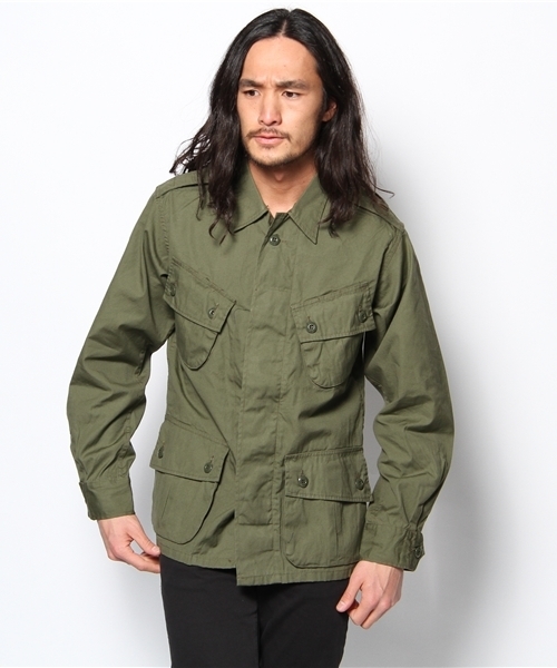 若干薄手の生地感で熱帯地域の戦闘服に採用されたモデルで、全ポケットにはマチが付き大容量。前立て部分は2重構造となっており斜風性を高めたトロピカルコンバットジャケットです。 BUZZ RICKSON'S / バズリクソンズ フライトジャケットの歴史と誇りを追求するブランドとして名高い「BUZZ RICKSON'S」。その復刻作業はスペック、素材、フォルム、パーツに至るまでこだわり、1着1着にクラフトマンシップを込め、本物だけが持つ魅力に肉迫します。 Model : H180 B86 W70 H86 (cm) Size : L 店舗へお問い合わせの際は下記品番をお伝えください。 品番:11-18-0516-086