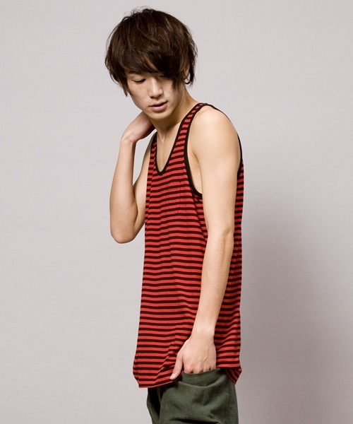 敢えてゆったりシルエットで仕上げたボーダータンクトップ。化繊混紡の艶やかで柔らかな生地は肌触りもよく、快適な着心地の仕上がりです。定番のアイテムゆえにトレンドに左右されづらく、幅広い着こなしに対応します。一枚で着て頂くのは勿論インナーとしても使い勝手が良いので、シーズン通して長くご愛用頂ける万能アイテムです。 店舗にてお問い合わせの際は、下記の品名・品番をお申し付け下さい。品名:ボーダールーズタンク 品番:B13SM-1206-001model:H174 着用サイズ:MEDIUM