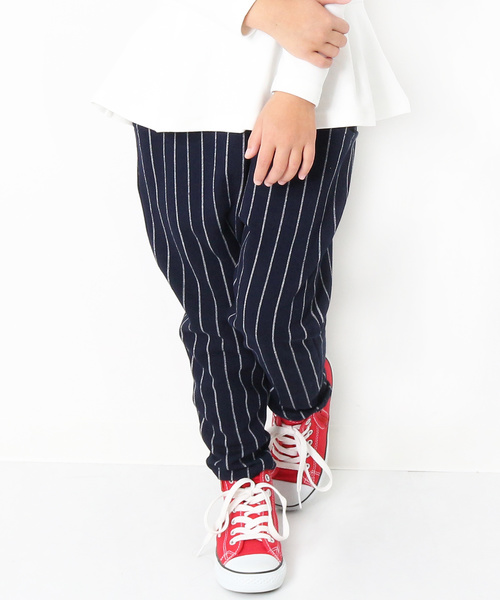 きちんと感と動きやすさ。 どちらも叶えた『ストレッチサルエルパンツ』。キレイに穿けるように股上が深すぎず、足首に向けて細くなるテーパードシルエットに仕上げました。お出かけスタイルにも最適な1枚です。また、伸縮性に優れた厚みのある上質ストレッチ素材を使用。やわらかい生地感で、ふんわり包み込まれるような穿き心地です。キッズからジュニアまでをカバーする100cm~160cmまでの豊富なサイズ展開!■ディティール■伸縮性:あり・ウエストはゴムで楽ちん♪ゴム取替口あり・便利なお名前タグ付き・両サイドにポケット付き