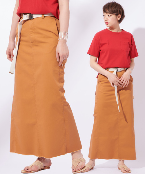 アメカジの定番、ペインターパンツの要素を落とし込んだCIAOPANICらしいスカートが登場! 足首までかかるマキシ丈のタイトスカートは、旬なスタイリングが出来るおすすめのアイテム!膝まで深く入ったバックスリットは、カジュアルなテイストの中にも女性らしさをプラスし、歩きやすさも◎! ハンマーループやスパナポケットなど、ディテールは細部までこだわり本格的なデザインに。 付属のガチャベルトを付ければ、スウェットやMA-1、メンズライクなブルゾンなどと相性抜群!こなれ感のあるカジュアルコーデを演出してくれます。 シルエットが綺麗なので、ベルトを外せば綺麗めスタイリングでも大活躍!シャツブラウスや綺麗めニットで大人な綺麗めコーデ、春に気になるレースアイテムにヒールで合わせればガーリーな雰囲気でも。 通年で使えて、ワードローブの定番になるアイテムです。 ・ジップフライ。